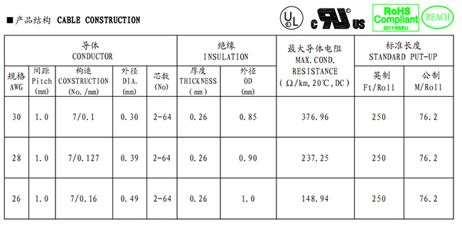 以下是UL2651排線具體參數(shù)規(guī)格:
